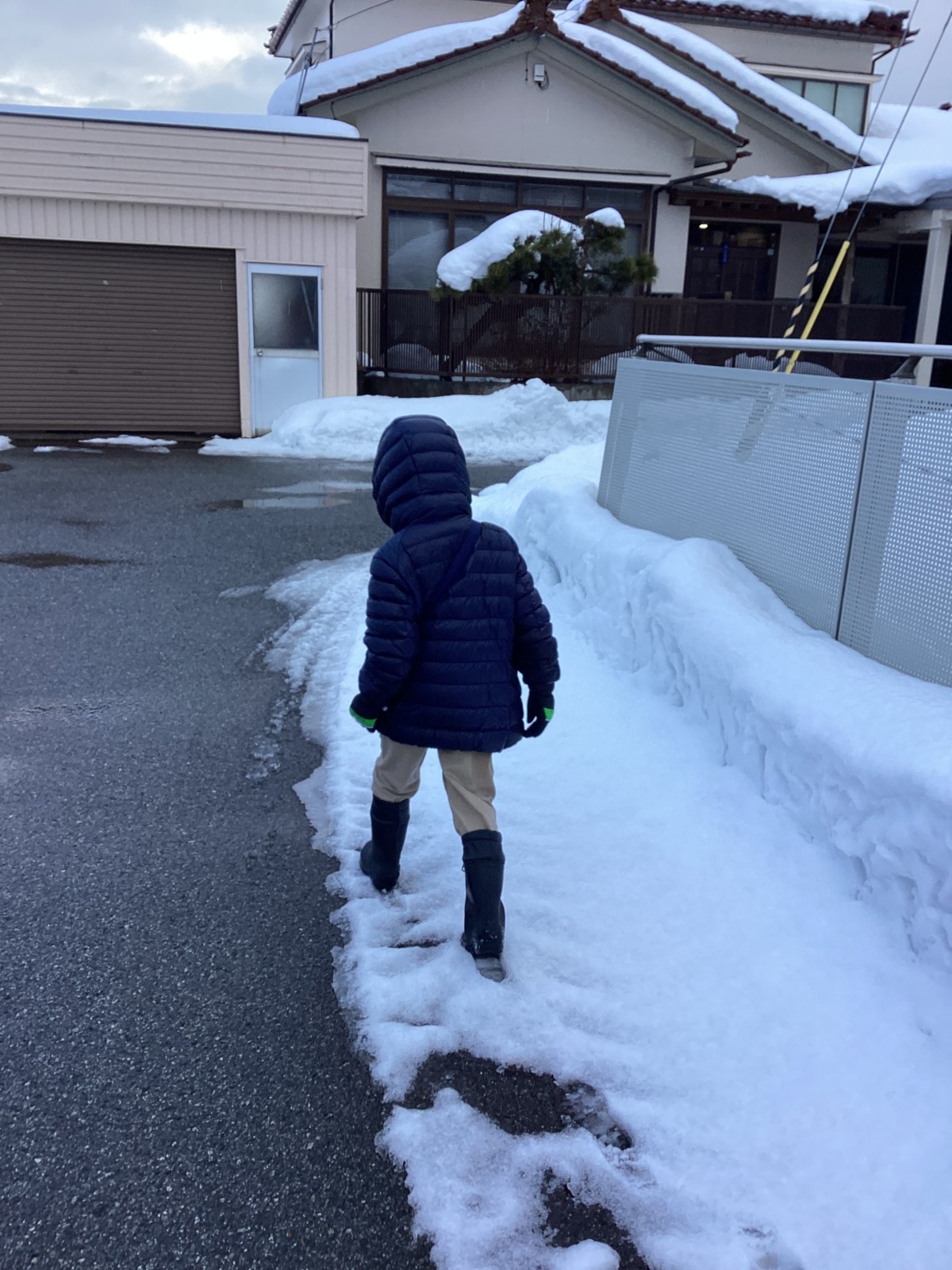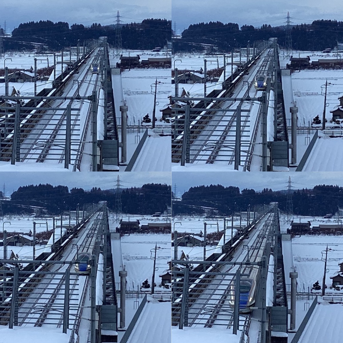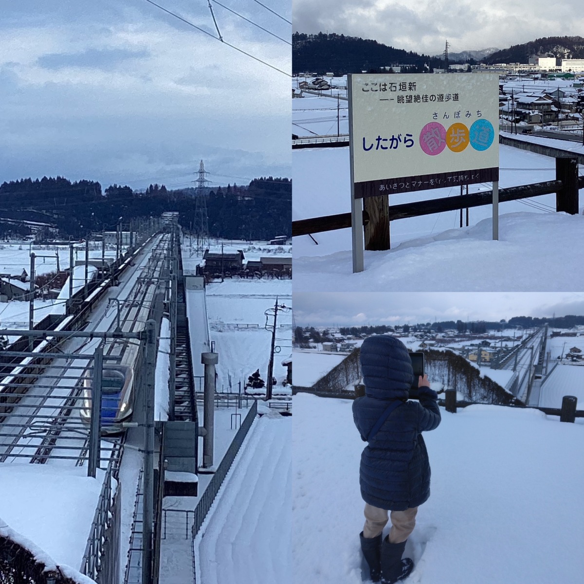2/1(日) 午後から小4長男と徒歩で雪道40分かけて秘密(でもないけど)の新幹線の通過を見下ろせるスポットへ。