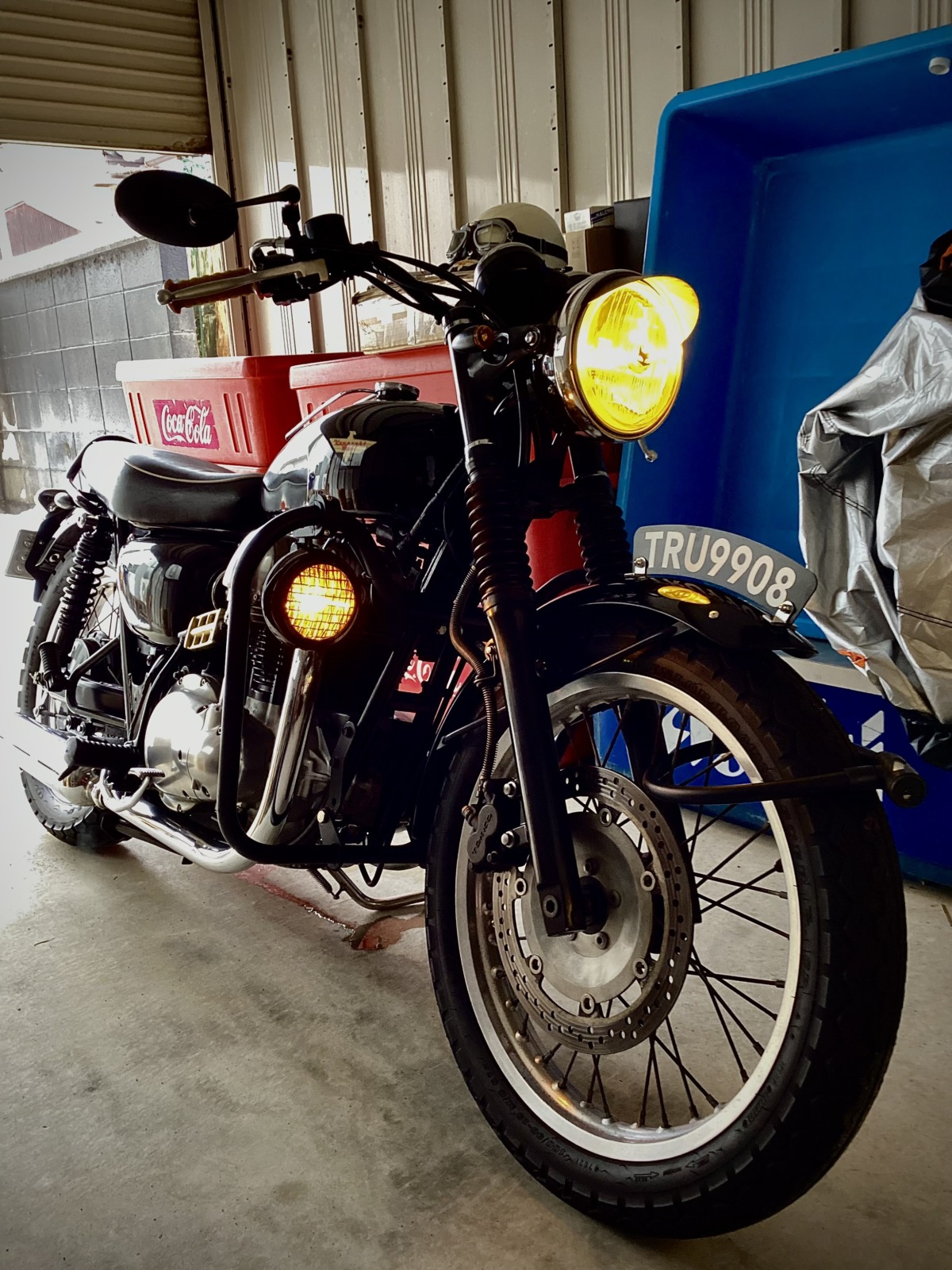 帰ってきてからは相棒W650の暖気。